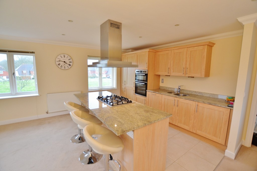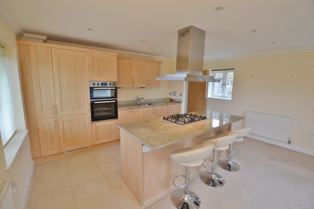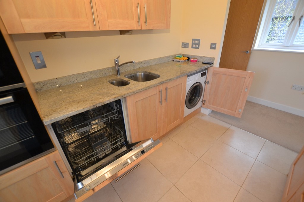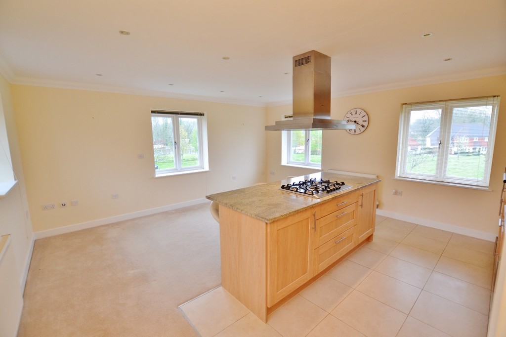 Built in 2008 by Rydon Homes, the property comprises one of two first floor flats above garages, each with their own private ground floor entrance. Stairs from the front door rise to the hall and on to a triple aspect open plan reception room and kitchen with views over the Green The kitchen area is well equipped with wall and floor units, granite worktops and integral fridge/freezer, dishwasher and washing machine. There is also an island breakfast bar with gas hob and extractor over, There are two double bedrooms, one with built in wardrobes and a large storage cupboard also housing the gas fired boiler. A shower room completes the well planned accommodation.