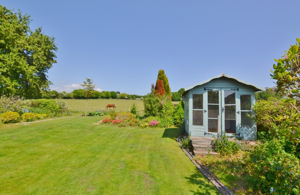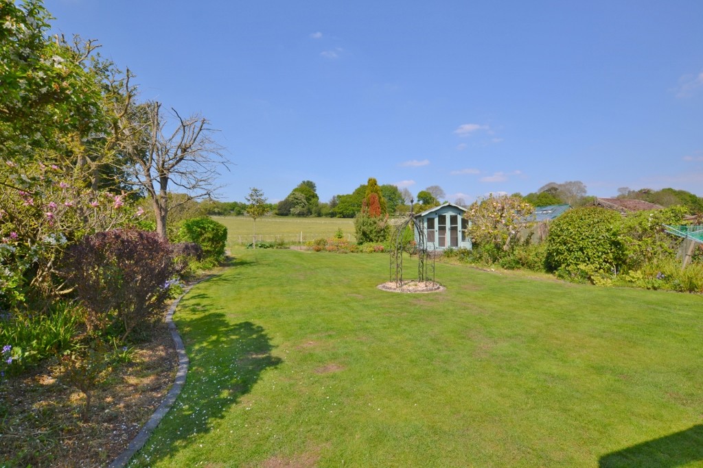To the front of the property, a gravelled driveway offers ample parking and turning space. A paved path lined with box trees leads to the wisteria clad open porch. A covered way at the side of the bungalow leads to a brick paved terrace. The rear garden is a fine feature of the property and is mainly to lawn flanked by well stocked shrub borders. At the far end of the garden is a vegetable plot with raised beds. 2 sheds. Summer house.