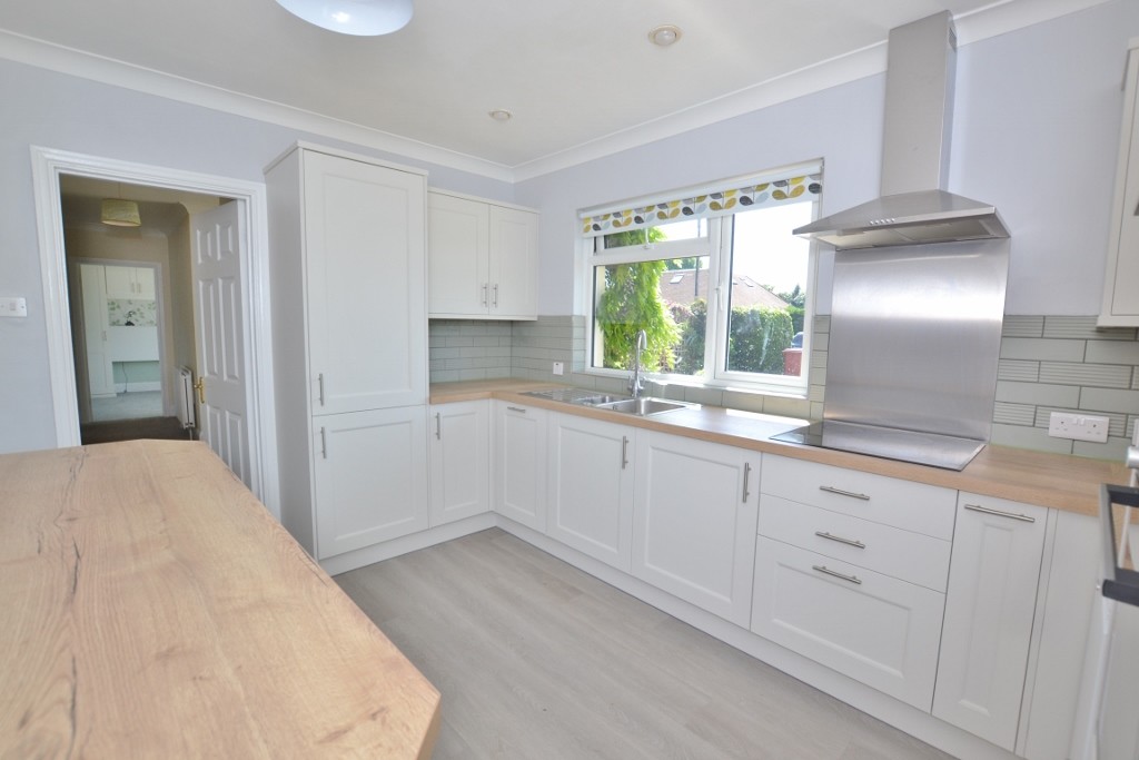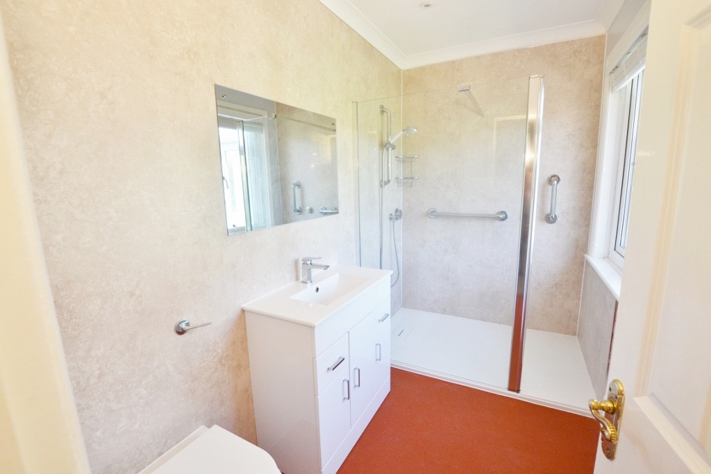This detached bungalow offers spacious and adaptable accommodation and is offered in excellent decorative order inside and out. The front door opens to a hall with cloakroom. The newly fitted kitchen has a good range of wall and floor units, integral appliances and ample worktops including a breakfast bar. The double aspect sitting room has an open fireplace and double doors open to a conservatory which has double doors to the garden. The two double bedrooms each have an ensuite shower room as well as fitted wardrobes. There is also a walk in storage room with fitted cupboards.