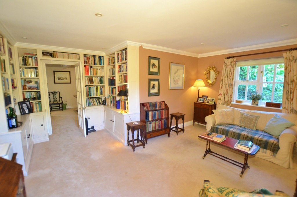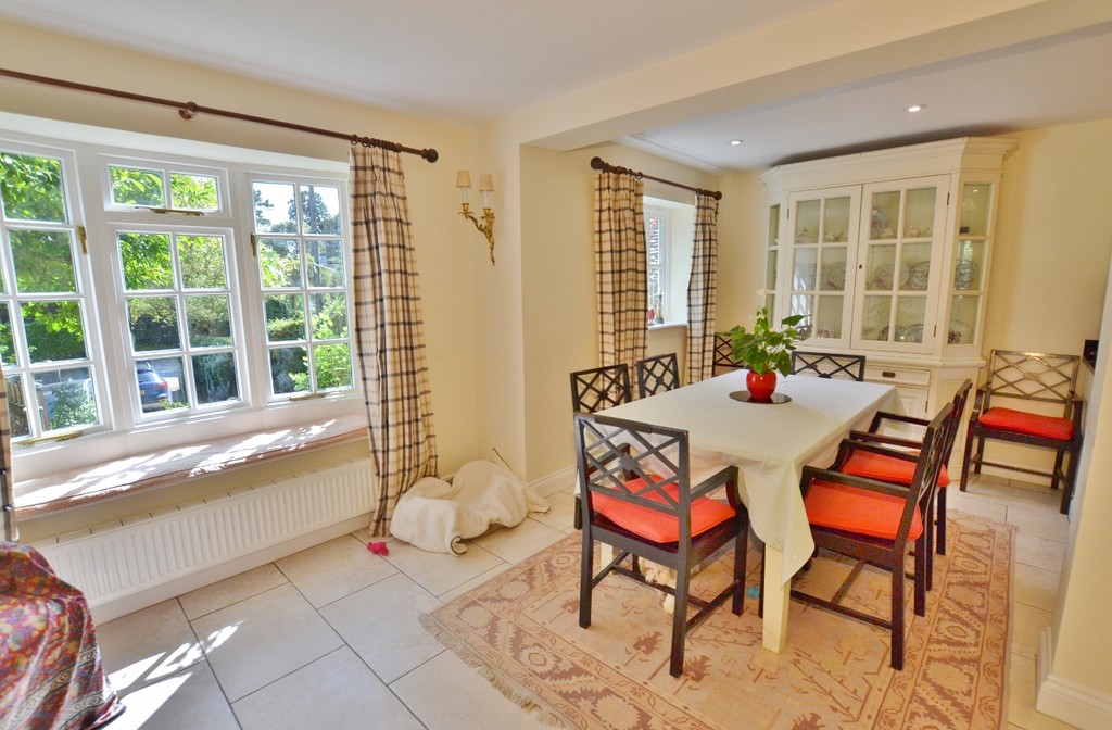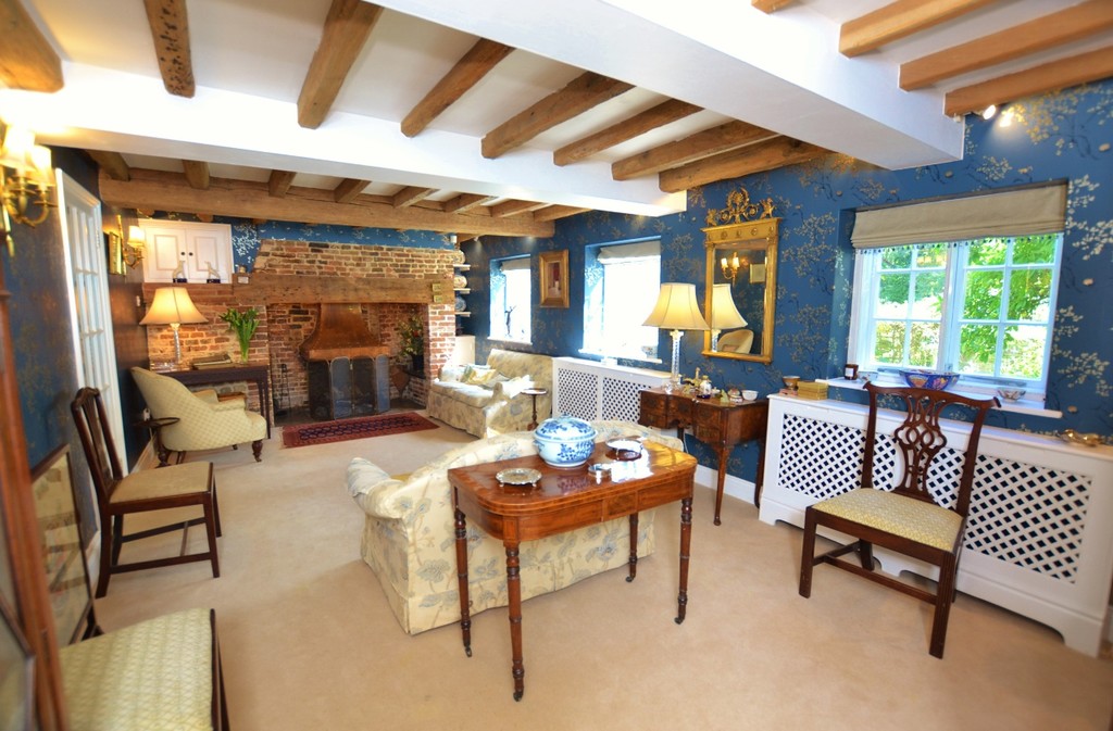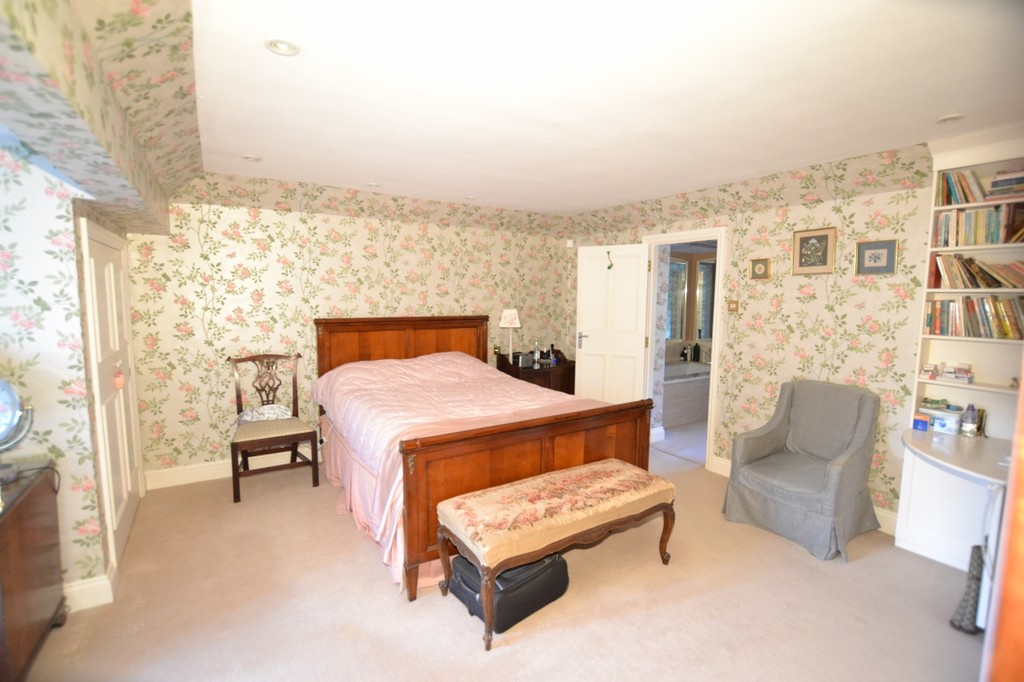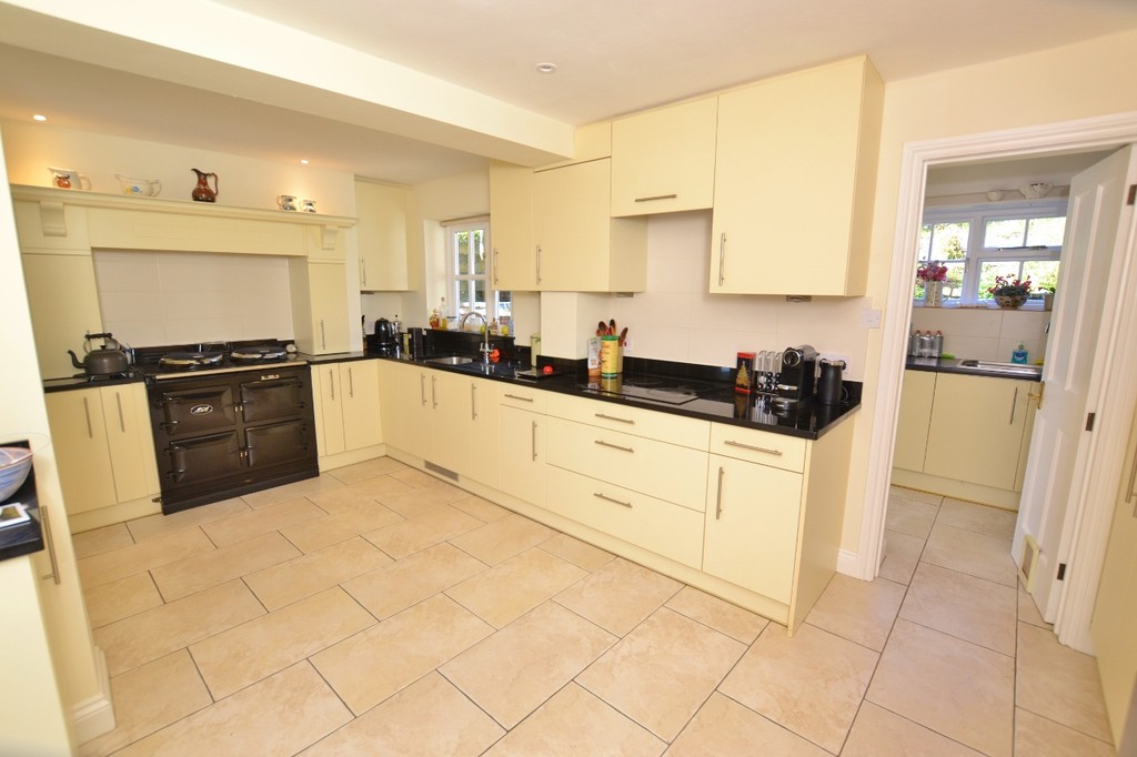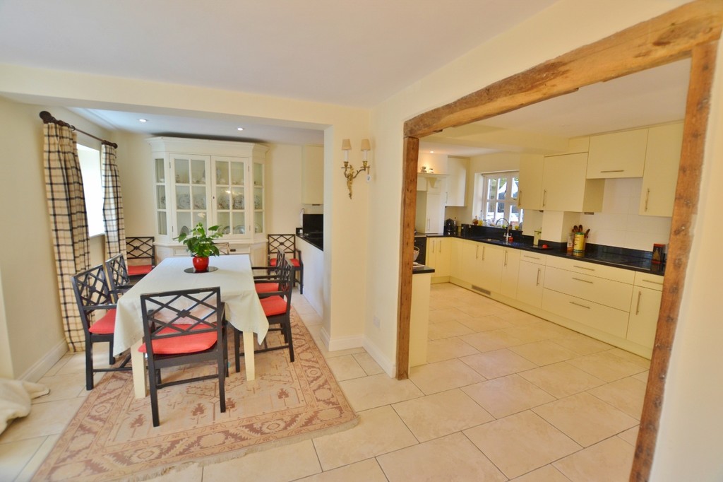 Dating from the 18th Century with elevations of mellow stone and brick under a clay tiled roof, this charming house has been extended in recent years and now offers well planned family living space. The front door opens to agood sized hall with cloakroom. The Open plan Kitchen/dining room is well proportioned with a window seat looking out to the front. The kitchen is fitted with a range of custom fitted cupboards under granite work surfaces, a three oven gas fired Aga and tiled flooring. A pantry and utility area with outdoor access is situated to the rear of the kitchen. To the right of the hall, double French doors open into the characterful drawing room, with exposed beams and a magnificent inglenook fireplace with copper canopy and original bread oven. From the drawing room, two steps lead down to the double aspect sitting room, fitted with a range of shelves and cupboard and with double French doors onto the garden. Stairs rise to the first floor and the generously proportioned main bedroom with ample storage and a spacious en-suite bathroom. There are three further double bedrooms, one benefiting from its own en-suite washroom, as well as a family bathroom and shower room. A versatile study, also suitable as a double bedroom, features French doors that open onto a rear terrace, offering views over the garden and across to the South Downs beyond.